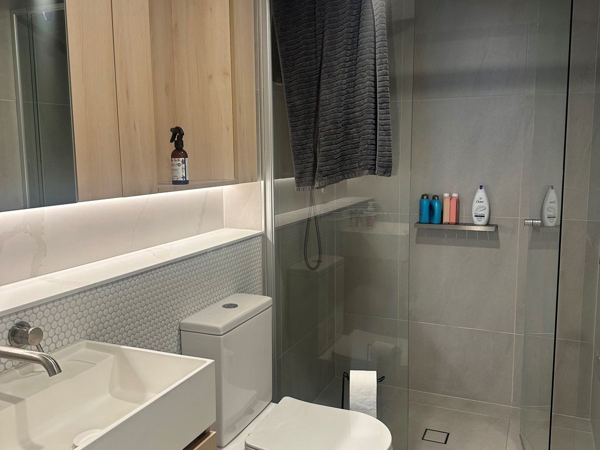 The 2 bathrooms are spacious with beautiful natural tones with floor to ceiling tiling and feature stones throughout bringing you the high-end hotel feel to everyday living.
